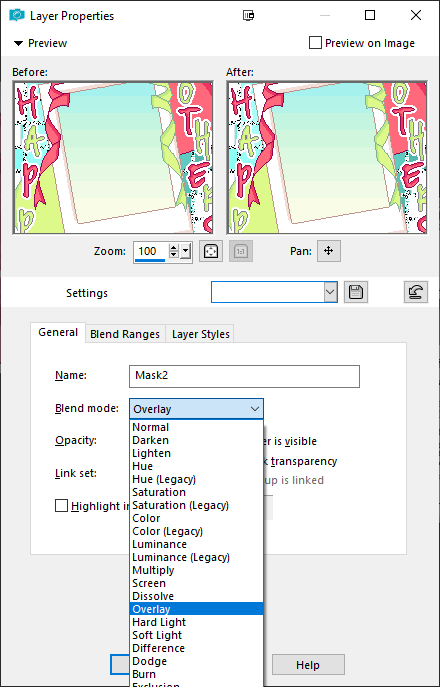 Layers Palette, click on this layer (Mask 2) and set the Blend Mode on