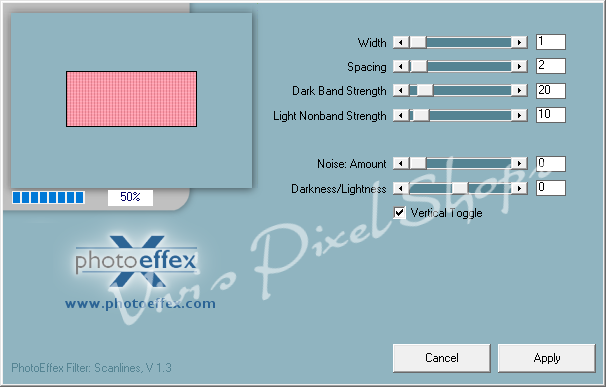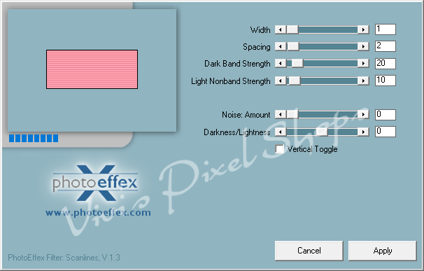 Ne pas Désélectionner-> Effets->PhotoEffex->Scanlines comme ceci: